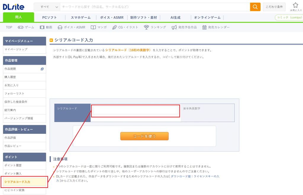 1. Login your DLSite account by https://www.dlsite.com/soft/mypage/user/serial/point